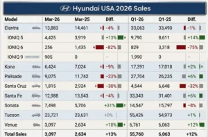 حققت هيونداي نتائج مبيعات إيجابية في الولايات المتحدة خلال الربع الأول من عام 2026، في مؤشر واضح على استمرار الطلب على طرازاتها المختلفة، خصوصًا ضمن فئة السيارات الكهربائية والهجينة التي تواصل اكتساب شعبية متزايدة.